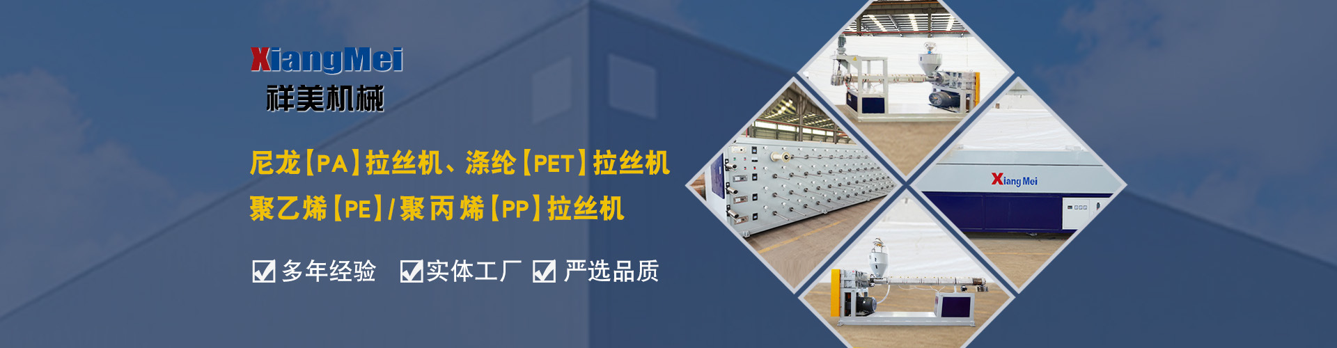 我公司是一家具有30多年專業(yè)生產(chǎn)塑料拉絲機(jī)的企業(yè),作為國(guó)內(nèi)最早生產(chǎn)圓絲塑料拉絲設(shè)備的企業(yè),成為國(guó)內(nèi)同行競(jìng)相爭(zhēng)仿的標(biāo)桿,公司產(chǎn)品主要可以生產(chǎn)聚乙烯(PE)、尼龍(PA)、聚丙烯(PP)、滌綸(PET)等作原料拉絲機(jī)設(shè)備及其配套設(shè)備、鉛芯機(jī)設(shè)備及其配套設(shè)備,拉絲機(jī)設(shè)備主要生產(chǎn)的產(chǎn)品有單絲、復(fù)絲、扁絲、刷絲、草坪絲、拉鏈絲、割草線等各類線絲,公司產(chǎn)品在國(guó)內(nèi)同行業(yè)中性價(jià)比高、有良好的口碑,曾獲“國(guó)家高新技術(shù)、新產(chǎn)品博覽會(huì)金獎(jiǎng)”被輕工部定位替代進(jìn)口產(chǎn)品、國(guó)家級(jí)新產(chǎn)品,并多次獲得省、市科技進(jìn)步獎(jiǎng),產(chǎn)品遍布全國(guó)大部分地區(qū),并遠(yuǎn)銷日本、意大利、俄羅斯、韓國(guó)、印度、澳大利亞、印度尼西亞、墨西哥、菲律賓、泰國(guó)、朝鮮、巴基斯坦、烏茲別克斯坦、越南、馬來(lái)西亞、老撾、越南、坦桑尼亞等國(guó)家和地區(qū)。 公司實(shí)行現(xiàn)代化企業(yè)管理,始終秉承以科技為先導(dǎo),制造為基礎(chǔ),管理為核心的企業(yè)面貌,運(yùn)用先進(jìn)的生產(chǎn)設(shè)備,創(chuàng)新的思維理念,確保產(chǎn)品多樣化、系列化,高品質(zhì),把誠(chéng)信、責(zé)任、創(chuàng)新作為祥美人不斷的追求的目標(biāo),為新老客戶打造高品質(zhì)的拉絲設(shè)備。 公司位于黃海之濱、亞歐大陸橋東橋頭堡的海濱城市——連云港,這有海陸空便捷的交通網(wǎng)絡(luò)、風(fēng)景秀麗的山海風(fēng)光,總經(jīng)理江中堯先生攜公司全體員工竭誠(chéng)歡迎各界人士、中外新老客戶來(lái)連洽談業(yè)務(wù)。